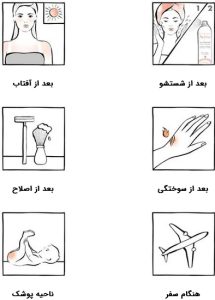 هر زمان که لازم است می توانید از این اسپری استفاده کنید؛ مخصوصا پس از شیو کردن، آفتاب سوختگی، التهابات پوستی نوزاد در نواحی پوشک و…