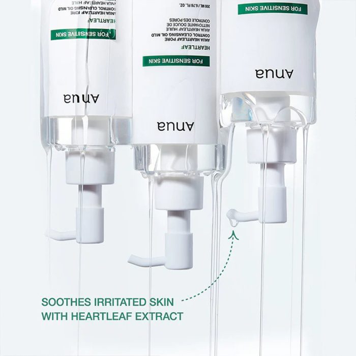 شوینده روغنی کنترل منافذ آنوا Anua – Heartleaf Pore Control Cleansing Oil Mild یک روغن پاک کننده ملایم و غیر کومدون زا است که به طور موثر پوست را از آلودگی ها، آرایش، SPF و چربی های اضافی پاک می کند. این محصول حاوی عصارهی هوتوینیا کورداتا است که به تسکین و آرامش پوست کمک میکند و برای پوستهای حساس بسیار مناسب است.